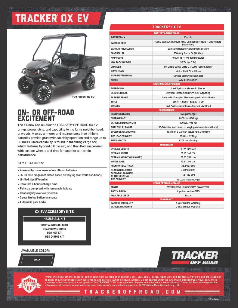 The all-new and all-electric TRACKER® OFF ROAD OX EV