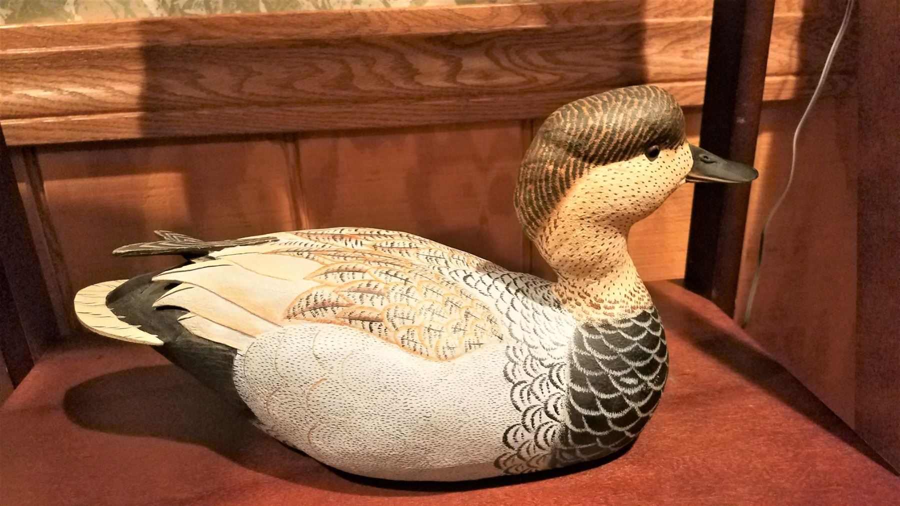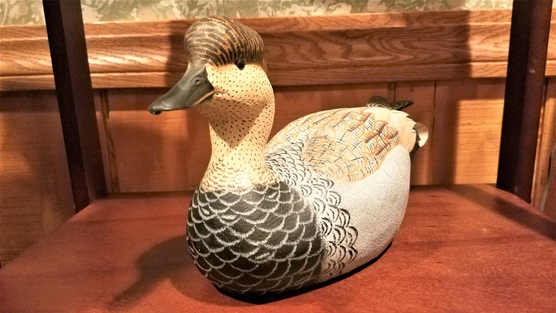 Attention all waterfowl enthusiasts, we have a beautiful Carved Gadwall Decoy. This "Gray Duck" decoy comes with a green felt base, measures 14in. long and 7.5 in. high. Would look great anywhere in your home.