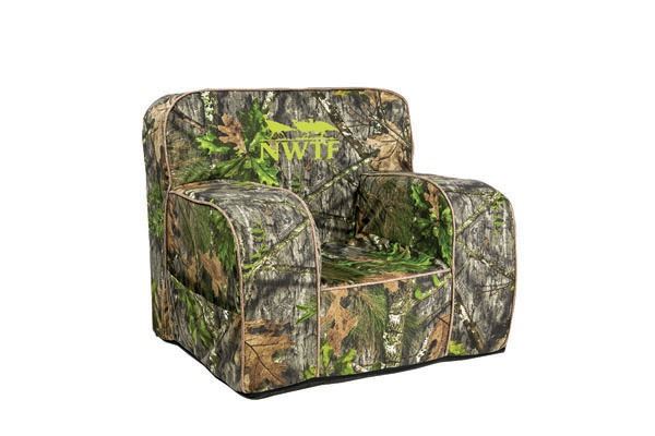 Grab the kids and go hunting or give them their own space to kick back and relax with this foam chair in NWTF Mossy Oak Obsession camo. It includes two pockets for storage, a carry handle and removable cover. The chair is lightweight and easy to transport. Recommended for ages 2-9. Weight limit: 85 pounds