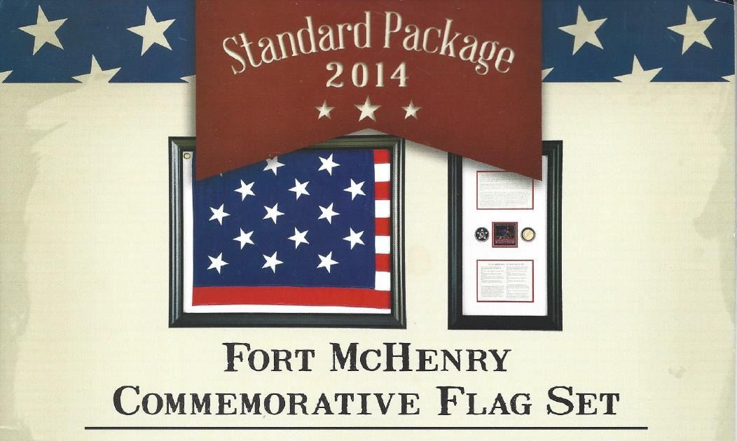 Marking the 200th Anniversary of the Star-Spangled Banner in 2014, this historic, decorative set features a 3'x5' Valley Forge USA-made 15-star flag that was one of 1,100 raised over Fort McHenry during Veteran's Day week 2012 to celebrate the bicentennial of the War of 1812 and the birthplace of the national anthem. The flag is exhibited in a 25.5"H x 31.5"W executive leather frame matched by a 25.5"H x 15.5"W framed presentation of a Fort McHenry certificate triple matted in white with navy and red accents. The certificate display includes a historical note and the lyrics to "The Star-Spangled Banner" along with a Fort McHenry pin and a patch commemorating the 200th Anniversary of Key's writing of "The Star-Spangled Banner". All printing and framing done in the USA by Mill Pond Press.