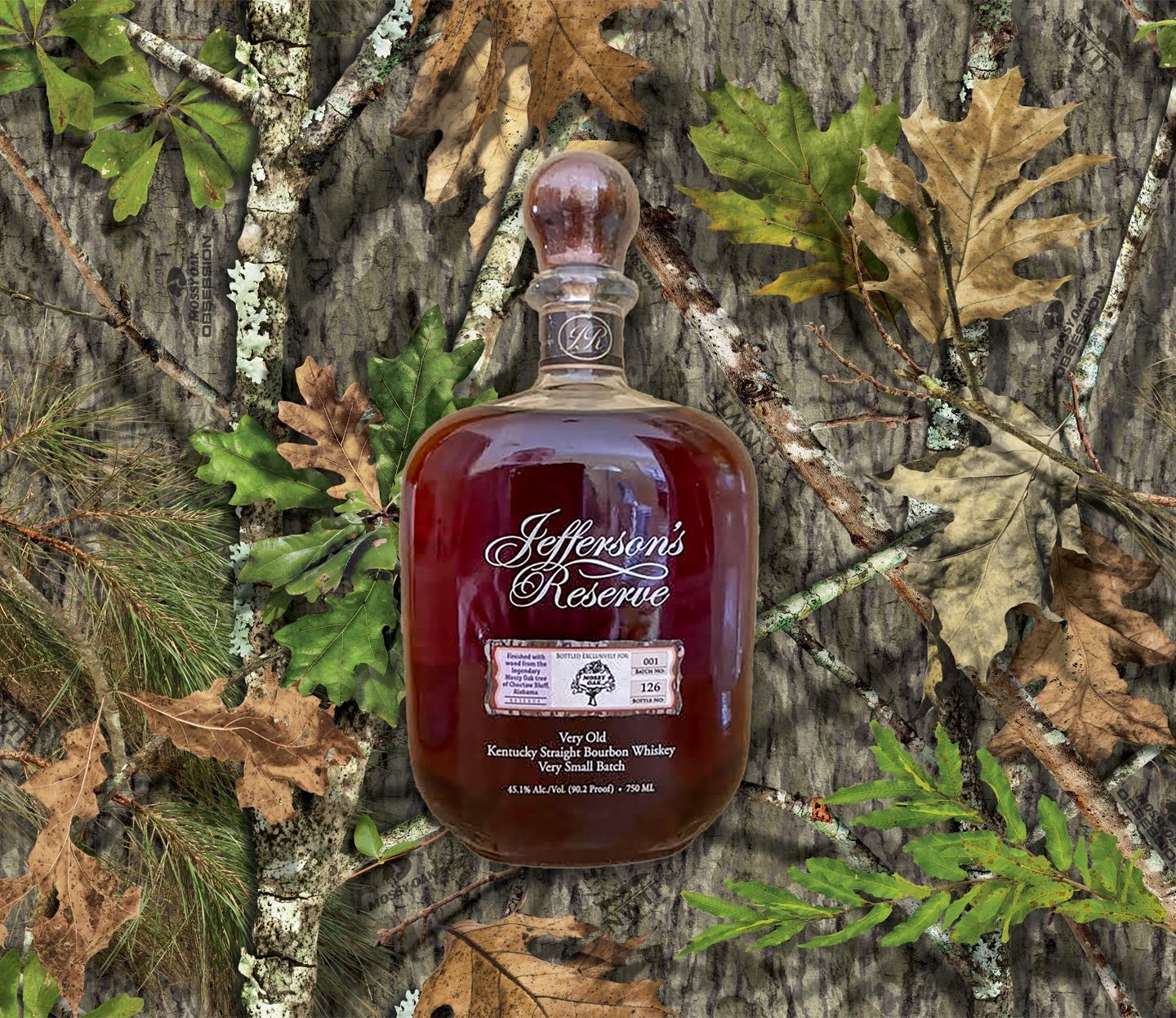 This is a bottle of Jefferson Reserve Bourbon. This Bourbon was finished with wood from the legendary "MOSSY OAK TREE" of Choctaw Bluff Alabama. Mossy Oak owns every bottle of this special bourbon and none of the bottles will ever be sold. A limited number have ever been released to help raise money for conservation.