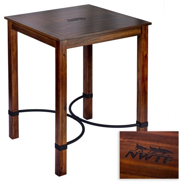 Talk turkey with friends and enjoy a cold beverage around this stylish NWTF-logoed pub table.