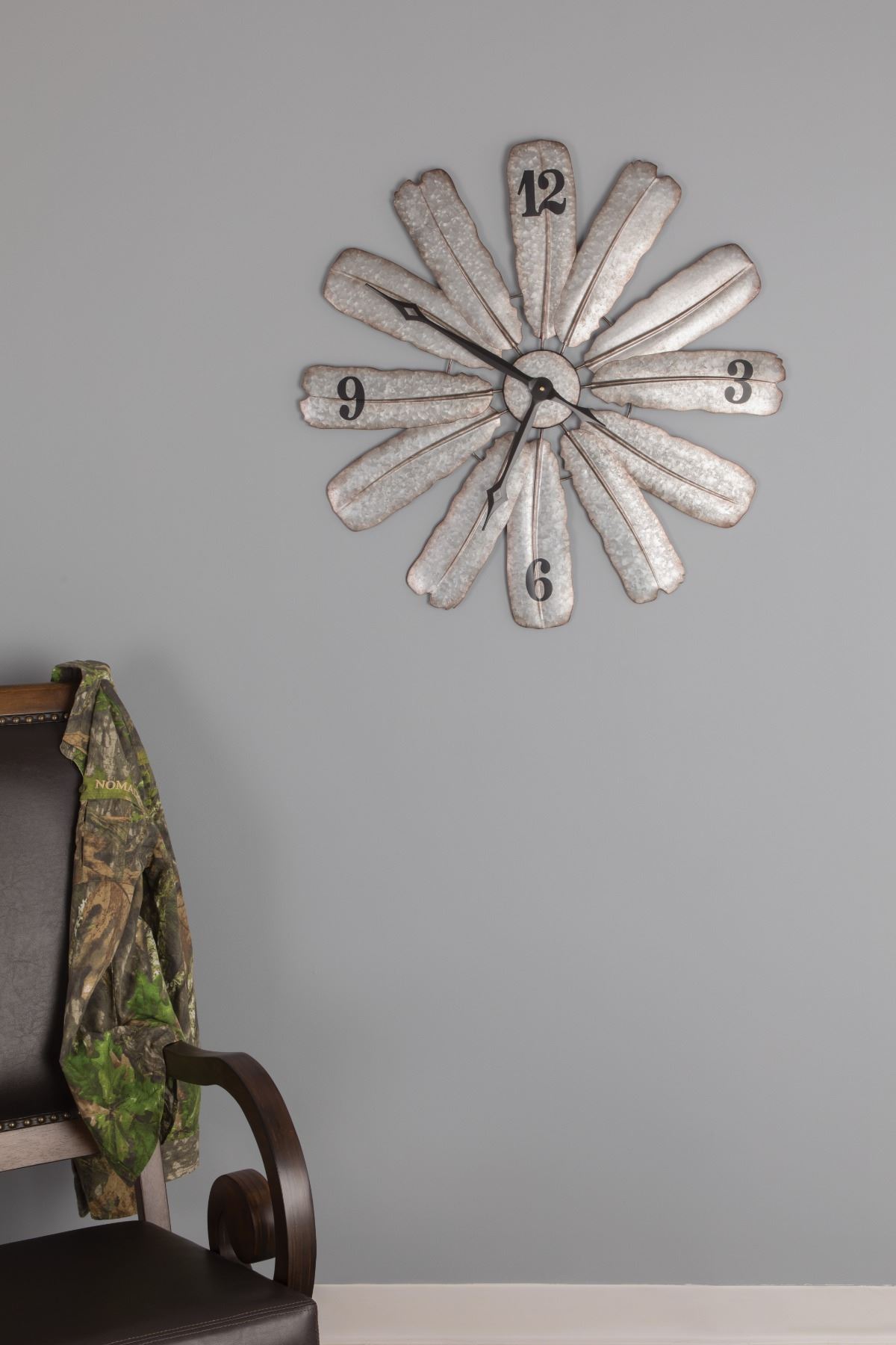 Bringing a bit of the old times into your home or office is a breeze. This nostalgic wall clock is patterned after an early prairie windmill and features galvanized-look, turkey-feather-shaped metal vanes and a classic, rustic appeal.