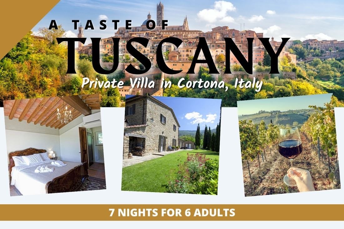 • 7 nights for 6 adults in a private villa located in Cortona, Italy