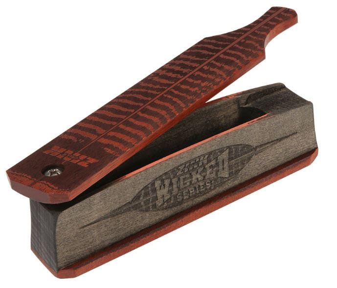 Born from Zink Calls and NWTF Grand National Champion custom call maker Marlin Watkins, the Wicked Series Box is a traditional-style box call constructed from poplar and extremely dense bloodwood. A double-sided design produces different tones so you can emulate multiple hens. With Watkins trademark style to put the turkey in the call, these versatile, natural turkey sounds are spot-on, from soft calling to loud locating, and everything in between.