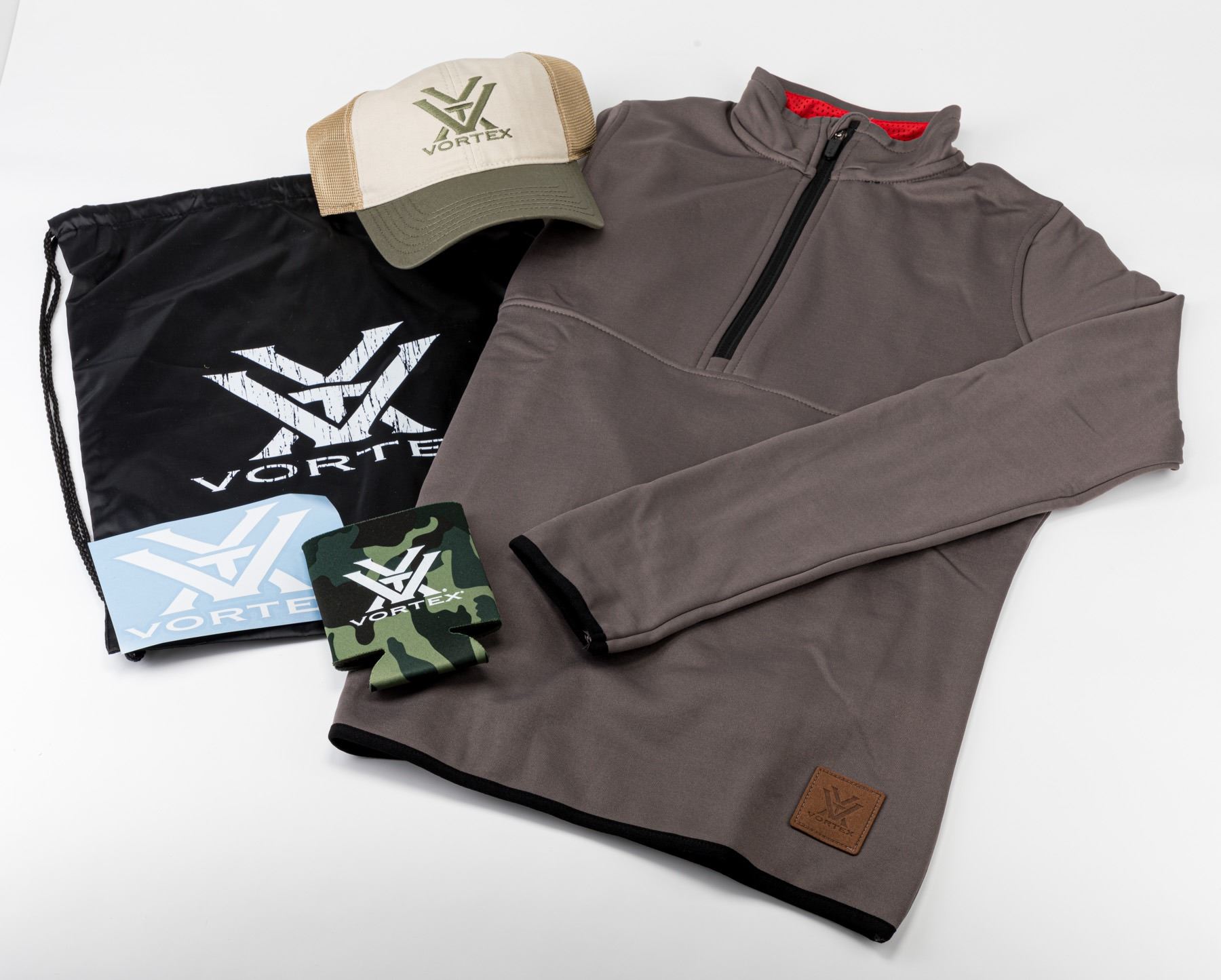 Vortex ladies 1/4 zip, cap, koozie, sticker and drawsting bag
